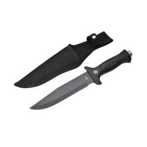 Survival camping and hiking black tactical knife, with a cool serrated blade, ideal for hunting; fixed blade design. 668